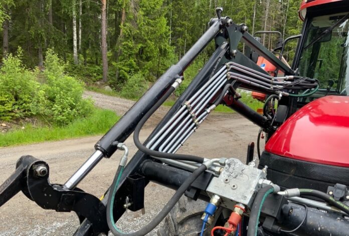 Electronic access to the loader bracket so you can e.g. fold plow with button in cab, see picture.